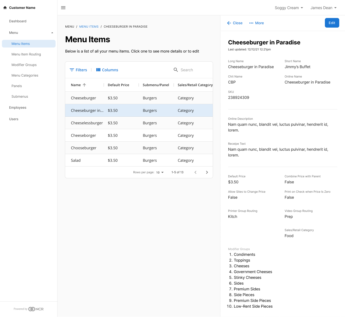 The final project I worked on was a huge B2B restaurant management system for owners/operators to run everything about their restaurant business from scheduling workers, to looking at sales data, to managing inventory of food ingredients. We worked with a third party development company to get things started and then transitioned to our in-house developers. The design system was fully mature at this point and we used it exclusively. I also had the opportunity to mentor a junior designer! Since this was a huge project, we used an agile workflow to keep in sync with product, design, and the third party developers. I also ran meetings with the developers only (a safe space away from the project managers) to ask any immediate questions, see progress, and just make sure everything was going smoothly.