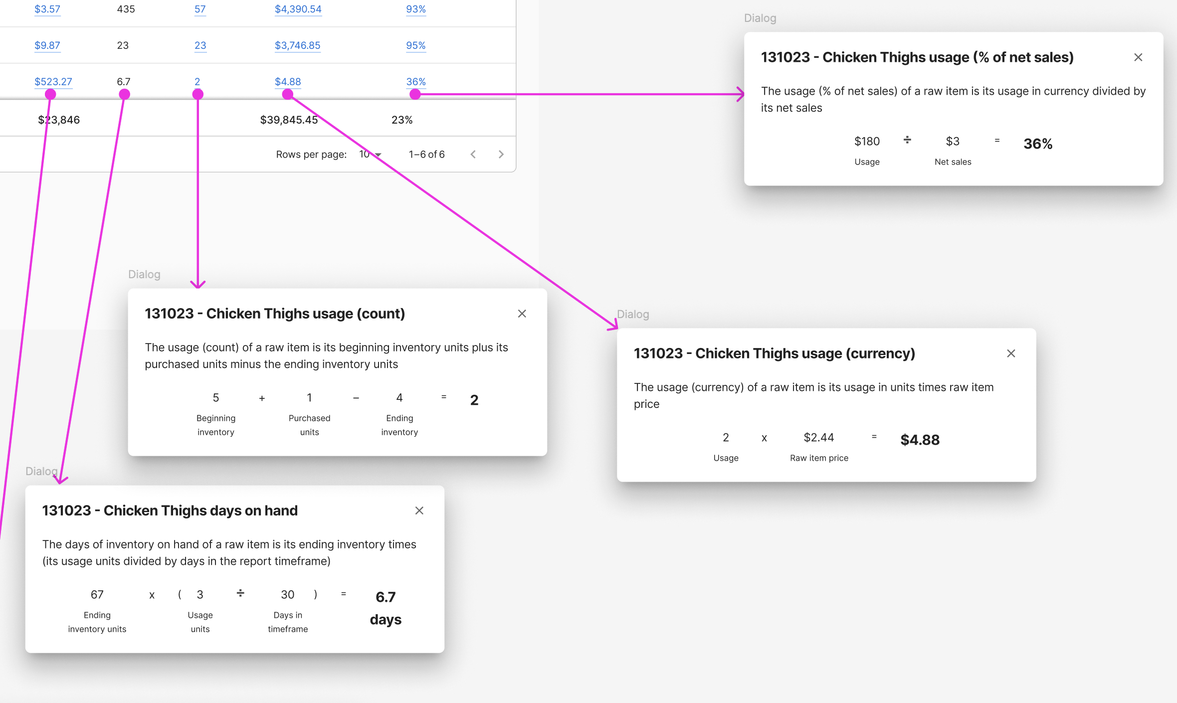 This feature started with requirements from the business people for a report about the cost of everything sold. This should help answer the question: "am I making money?" by telling you how much of a menu item's cost goes towards its ingredients, and walking you through the calculation so you can see where any problems are.